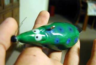 爬虫類顔のバルサ製のデカルアーで
